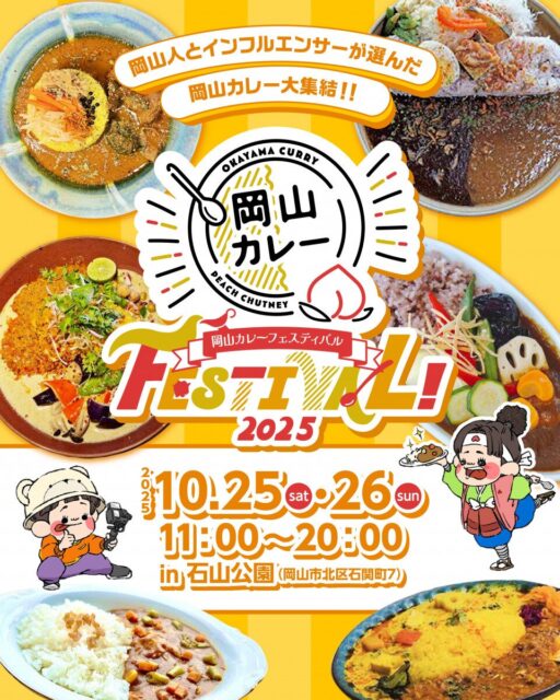 岡山市中心部の石山公園で開催される岡山カレーフェスティバル2025は、岡山ご当地グルメ「岡山カレー」が一堂に集まる注目イベントです。岡山の桃チャツネを使ったカレーを、地元で活躍するインフルエンサーがセレクトした人気店の味から堪能できます。会場では多彩なカレーの食べ比べだけでなく、キッズダンスショーなどのステージイベントやノベルティ抽選企画も用意されており、家族連れでも楽しめる秋のおでかけスポットとしておすすめです。